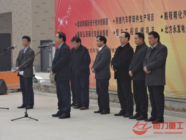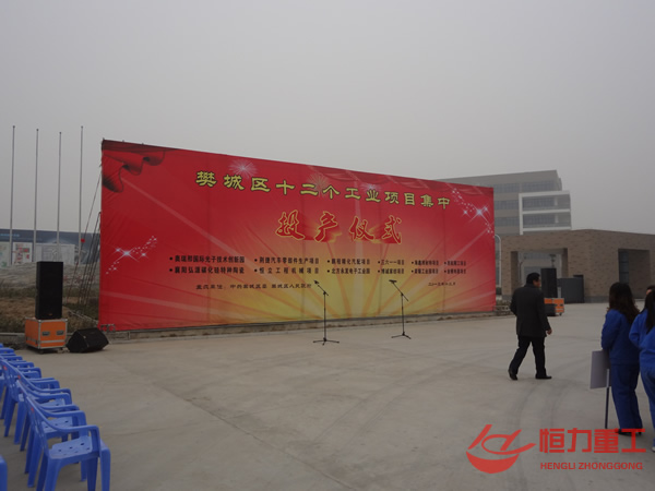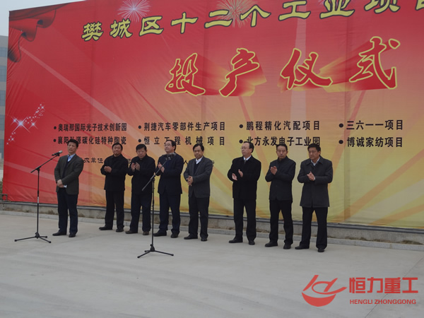 恒立重工一期工業項目投產儀式 項目位于樊城區萬州大道南側,占地64母,總投資1.5億元,由湖北恒立工程機械有限公司投資建設,湖北恒立工程機械有限公司是一家集科研開發、生產經營于一體的科技型工業有限公司,公司資產總值8000萬,公司主要專業研制開發生產