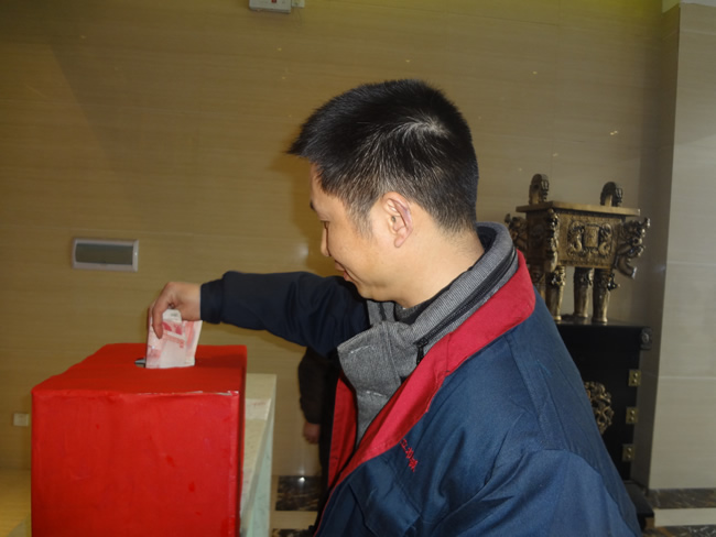 3月12日的中午,在公司領(lǐng)導(dǎo)的關(guān)心和倡議下,向全體員工發(fā)起了為小張(化名)同志獻愛心捐款的倡議。 小張是本公司生產(chǎn)部員工,因小孩突發(fā)疾病而入院,昂貴的手術(shù)費和醫(yī)藥費對本來就不富裕的一家無疑是雪上加霜。得知這一情況后,公司高層管理立即發(fā)出獻愛心