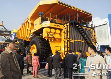 此次寶馬展上,徐工成功推出DE400礦用卡車。DE400是由徐州工程機械研究院研制生產,是目前全球載重量最大的礦用卡車,載重量可達400公噸,最高速度50km/h,舉升時間24s。采用先進的交流電傳動系統,原裝進口環保電控高性能柴油發動機,動力強勁。箱形截面結構車架,由高強度優質合金鋼板和鑄鋼件制造。智能制動技術,防止誤操作。符合人機工程學的駕駛室舒適安全。整車配備自動稱重系統、集中滅火系統、快速注油系統、自動潤滑系統及各種安全設備,保證整車運行安全高效。